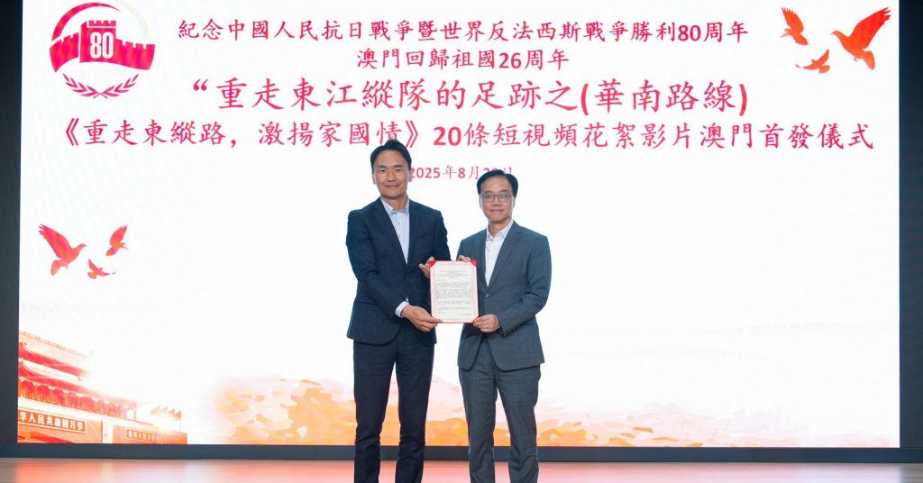 To commemorate the 80th Anniversary of the Victory of the Chinese People’s War of Resistance Against Japanese Aggression and the World Anti-Fascist War, as well as the 26th Anniversary of Macao’s Return to the Motherland, the Preparatory Committee for “Retracing the Footsteps of the Dongjiang Column” held the Macao premiere ceremony on the afternoon of the 28th for “Retracing the Dongjiang Column — Inspiring Patriotism through the Southern China Route,” a series of 20 short video highlights.