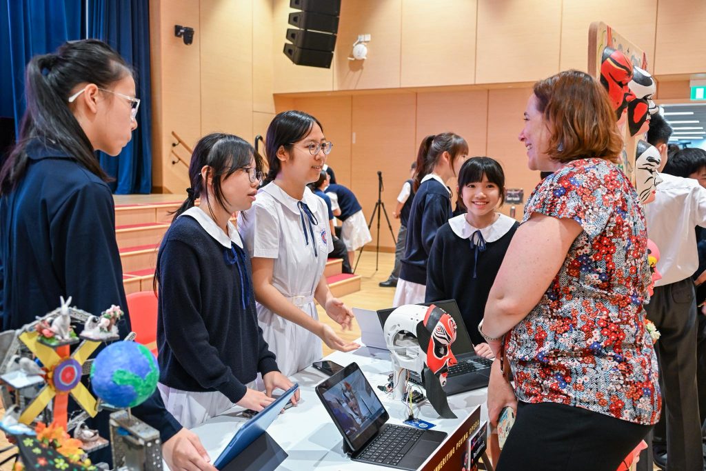 The exhibition featured the works of S1, S2, P4, and P5 students, and the learning outcomes of all students in S1 and S2 were comprehensively displayed, reflecting the school’s focus on a diverse curriculum. Students also served as presenters, sharing their creative ideas, research processes, and practical applications. This not only strengthened their communication skills and boosted confidence but also provided valuable hands-on experience for the future.